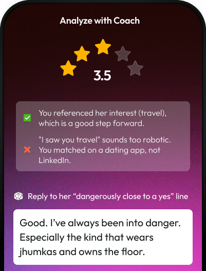 bro the “analyze text” thing??? insane. Seeing feedback on what I typed + alternate replies made me realize why my convos kept dying 💀💀 once I understood that, replies just… came. 10/10 would recommend.